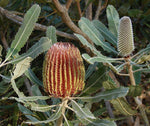 Banksia menziesii Dwarf is a dramatic dwarf banksia that is also known as the Firewood or Menzies Banksia. This beautiful plant is a stunning ornamental for the garden or pot as it has large, colourful flower heads and serrated grey to green coloured foliage. The large flowers begin pink/red changing to yellow as they open, making quite a show and attracting nectar-eating birds and bees. Suitable as a cut flower, the flower spikes retain colour for a long time in the vase and are ideal for drying. If grown in pots - ensure a potting mix for Australian Native plants is utilised.