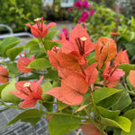 Bougainvillea Babybino Pedro is a spectacular compact shrub with warm, brick-red tracts that flower periodically through the year, with a main flowering flush in spring and summer. As its name suggests, it is a smaller bred plant that is perfect for a favourite pot, understory planting, courtyard, topiary or hedging. Some light pruning after flowering is recommended.