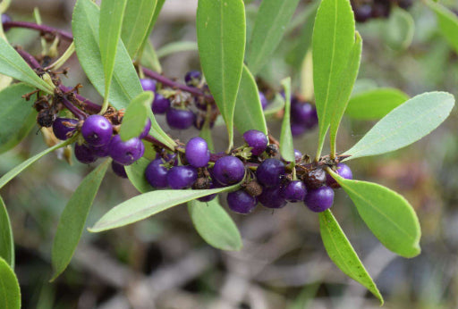 Myoporum insulare Prostrate, or Boobialla (also known as Native Juniper or Coastal Boobialla), is a native, fruit-bearing groundcover. This species produces small white flowers as the weather heats up - in warmer areas of Australia, it’s not unusual to experience a long flowering season - with fruit following shortly after. As summer ends, Boobialla produces small, round, purple fruits with an astringent sweetness. They’re great for jams, jellies and preserves. This fast grower bears smooth, green, spatula-shaped leaves with toothed edges near the tip. Even when creeping, it takes on a bushy appearance, making it perfect as a rockery plant, for filling gaps or for smothering out weeds. Boobialla is hardy and can adapt to many climates, though it may lose its lustre and drop its leaves when exposed to frost. It’s been known to recover quickly in the spring, after pruning.