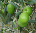 Californian Queen olive trees are medium evergreen olive trees with leather-like leaves coloured green with silver undersides. The olive is a large, green, almost-round-in-shape olive primarily developed as a table olive - especially for pizza - and is widely grown to produce high-quality olive oil. The olive is ready for harvest from March through to September. California Queen is an ideal addition to gardens and landscapes as an attractive specimen, street or shade tree.