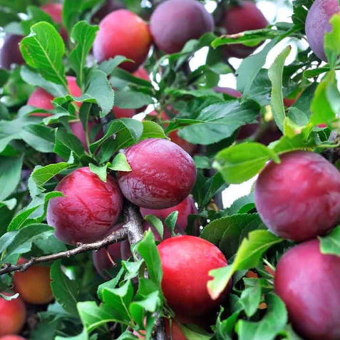 The Satsuma Plum Dwarf is a small and attractive fruiting deciduous tree producing fragrant pink and white blossoms before the appearance of the fruit. The Satsuma is a gorgeous, red-purple freestone plum and the firm, juicy flesh has a sweet spicy flavour. Ideal for eating fresh, preserving and stewing. A mid-season variety harvesting in mid to late summer. Satsuma requires a cross-pollinator to bare a good fruiting crop. Pollinators: Santa Rosa, Mariposa, Ruby Blood, Narrabeen.