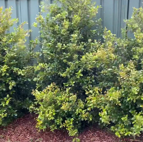 Syzygium australe Resilience is a fast-growing compact lilly pilly with tightly packed pale green foliage that emerges with a reddish bronze tinge. Fluffy, creamy-white flowers in spring attract bees, birds and butterflies, followed by edible fruit. Excellent for hedging and screening, and topiary and bonsai.