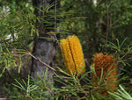Characterised by evergreen, slender-leaved foliage, Banksia spinulosa displays large cylindrical flower spikes in tones of orange to red from autumn through winter. The banksia is best suited for coastal gardens, wildlife gardens( birds adore these plants and are kept busy for ages) hedges and screens.