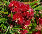 An iconic, compact variety of bottlebrush, Callistemon Captain Cook is admired for its brilliant red, bottlebrush-shaped flowers that appear profusely from spring through to autumn. With its dense, bushy form and slightly pendulous branches, it serves as a striking feature shrub, hedge, or container specimen. The fine, narrow foliage adds a soft texture, while its vigorous flowering and tidy growth habit make it highly versatile for formal and informal landscapes alike. This cultivar responds exceptionally well to pruning, which is best undertaken after flowering to maintain its compact shape and encourage repeat blooming.