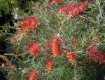 Grevillea RSL Spirit of ANZAC is a fast-growing, evergreen native shrub with green fern-like foliage and stunning large red brush-like flowers throughout the year. The glorious flowers attract nectar-feeding birds and are excellent for cutting. The native shrub is dense in habit and is ideal for rockeries, containers, mass plantings, and native gardens. Prune after flowering to maintain a compact and dense shape.