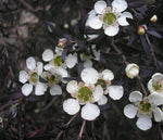 Leptospermum obovatum Starry Night is a graceful weeping shrub with soft dark purple-almost black foliage and purple-pink young stems. The large white cup-shaped flowers attract butterflies and small birds that love to forage amongst the blossoms. Plant Starry Night as an eye-catching specimen in a paved courtyard, an informal screen against a wall or fence line, or as a medium-sized hedge. The dark foliage adds interest all year round and acts as a great contrast plant in gardens and landscaping.