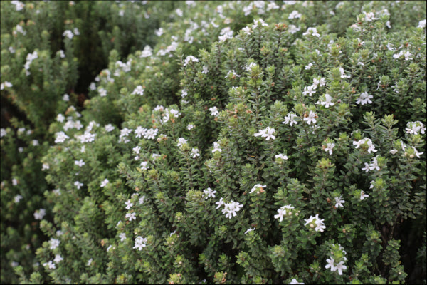Westringia Grey Box is a small dense, grey-leafed shrub ideal for compact hedging. The shrub is great for colour contrast against green plants with its grey foliage and flowering masses of white flowers from September through to May. It can be used as a hedge or left unpruned as it will stay compact in its natural ball shape. Regular pruning will result in a tidier, denser hedge.