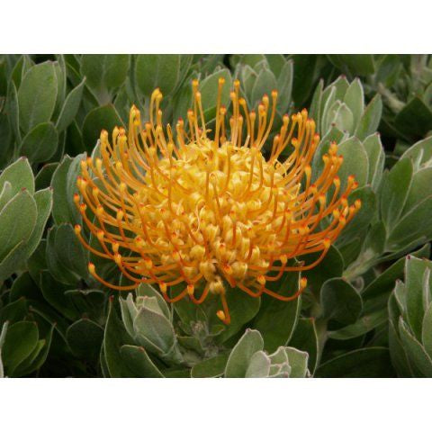 Looking to attract native birds to the garden - plant Leucospermum Carnival Copper! A stupendous shrub with mid-green foliage, it bursts into life with masses of superb, copper-yellow pin-cushion flowers in spring. Ideal in native gardens, coastal gardens, general landscaping, pots or as a medium-sized hedge. Carnival Copper blooms are outstanding in cut flower displays.
