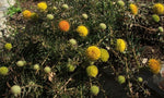 Leucospermum Prostratum is an unusual ground cover variety of leucospermum with a generous flowering display of golden orbs that cover its branches. Sweetly scented flowers are yellow when they open, deepening to apricot and red when mature. The main flowering season occurs from midwinter to early summer but odd flowers do appear throughout the year. Prostratum can be planted into containers or hanging pots, or left to layer your garden floor.