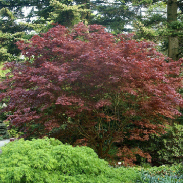 Acer palmatum Bloodgood has been grown in Australia for many years, proving its reliability and garden performance. Over time, it develops a broad, spreading crown, making it an excellent feature tree for a wide range of landscapes. The deeply lobed, serrated foliage emerges a rich plum-purple, holding its colour well through summer before transforming into vivid crimson tones in autumn. Ideal as a deciduous shade tree, it performs beautifully in gardens, parks, and as a background feature in mixed borders. Like other Japanese maples, it has fine, delicate foliage and a naturally elegant form. One of the most renowned Japanese maple cultivars, Bloodgood is valued for its striking colour, toughness, and adaptability.