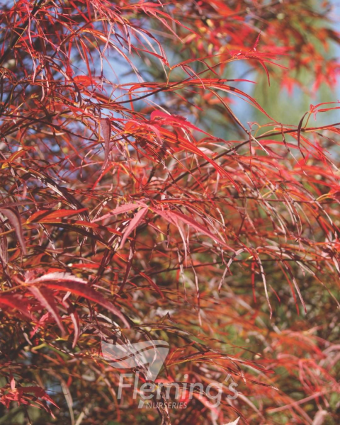 Acer palmatum Red Pygmy is a fabulous dwarf ribbon-leaf maple with unusual foliage colour in spring. The leaves of this Japanese Maple are a deep red in spring and may become slightly greener through summer. Red Pygmy has a vibrant orange-red leaf colour in autumn. Suitable for small garden planting, courtyards and keeping in a pot