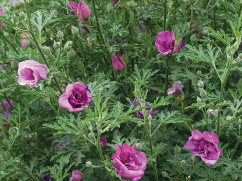 Alyogyne huegelii ‘Delightfully Double’ is a stunning Australian native hibiscus and the first of its kind to feature double blooms, with an extra row of silky petals creating a lush, ruffled effect. This fast-growing, medium-sized shrub is a spectacular feature plant for garden beds or large pots, producing a profusion of blooms from early summer through to autumn. It’s tough and versatile, tolerating both dry and humid conditions, and thriving across a wide range of climates in Australia. To keep it looking its best, give it a light trim after the first major flush of flowers, as regular pruning encourages a denser, more compact shape and even more blooms.