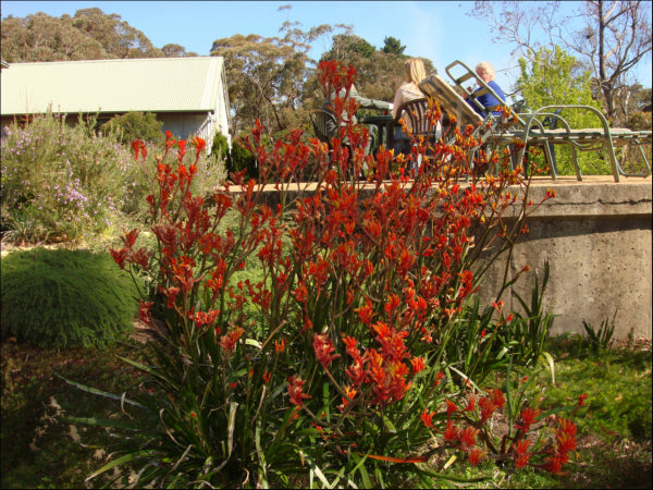Amber Velvet is an attractive new hybrid Kangaroo Paw featuring large strappy leaves reaching 2m in height and eye-catching red and yellow flowers growing to 3m from the ground in spring and early summer. These flowers produce large amounts of nectar - attracting hummingbirds, native birds and bees to the garden. It is an ideal plant for smaller gardens and containers. After flowering remove the older stems low in the plant.