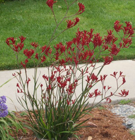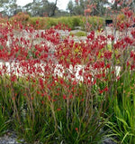 Big Red is a magnificent kangaroo paw with leaves 250 mm long with flower spikes up to 2m tall! The clusters of vivid tomato-red flowers are up to 40 mm long and put on a fabulous show over a long period from late spring to mid-summer. These beautiful native flowers will attract nectar-feeding birds to the garden. Annual fertilising after flowering using an Australian native fertiliser will be beneficial. Remove spent flower spikes and dead foliage regularly.