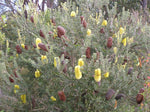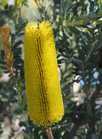 With its visually arresting appearance, Banksia praemorsa will make a striking centrepiece for your garden. The large, serrated leaves, resembling green combs, are arranged in a spiral pattern, but the true showstopper is the unique inflorescence, a dense, cylindrical arrangement of bottlebrush flowers. These vibrant blooms, commonly in shades of orange and red, contrast beautifully with the green foliage, creating a spectacle of colour that attracts numerous pollinators, including birds, insects, and mammals. Fantastic as an ornamental in the garden, or as wind-break or coastal planting. Banksias are phosphorus-sensitive, so a good native fertiliser is best when it comes to feeding time.