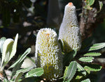 Banksia serrata, or Saw or Old Man Banksia, is a character-filled small to medium-sized tree with leathery serrated leaves and large, creamy yellow to brown flowers in summer. The flowers are followed by interesting pods, and the bark is quite lumpy - both of which helped inspire May Gibbs' Big Bad Banksia man. The plant can vary in size depending on the soil and its exposure. Banksia serrata attracts nectar-loving birds and other wildlife to the garden, and black cockatoos like feeding on the developing cones.