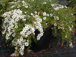 Leptospermum White Wave PBR is low and wide and undulating. Covered in white flowers in spring like a froth of fresh surf, the arching layers of branches are covered in flowers twice as big as Cardwell's on mature plants. The dwarf native shrub is ideal as a groundcover, mass planting, feature shrub, against a retaining wall or down a bank. Prune after flowering and feed with a native fertiliser.