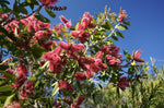 Melaleuca Candy Sparkles is a fabulous, fast-growing shrub to small tree featuring a distinctive paperbark trunk. In spring and autumn, it bursts into brilliant deep pink to red bottlebrush flowers tipped with golden stamens, creating a dazzling display that attracts honeyeaters in abundance. Ideal as a small street tree or a stunning garden specimen, Candy Sparkles also makes an excellent feature plant in mixed native gardens. It responds well to pruning and can be easily maintained at your preferred size. For best results, prune and apply a native fertiliser after flowering to keep your Candy Sparkles healthy, vibrant, and full of bloom.