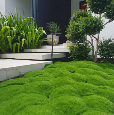 Scleranthus Biflorus, known as Cushion Bush, is a low-growing perennial with bright green, moss-like foliage. An interesting feature plant that forms sculptural cushions, and moulds itself around rocks. It is also good for pots, either planted to contrast with other plants, or as a cute plant on its own. It is a good lawn substitute as long as it gets very little traffic- it is lawn look only.