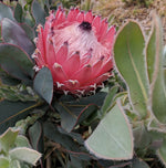 Protea magnifica ‘Queen’ – a majestic and elegant addition to any garden, known for its breathtaking beauty and robust nature. Protea magnifica ‘Queen’ lives up to its royal name with its large, regal blooms. Featuring exquisite pink bracts that surround a prominent furry central cone, these magnificent flowers bloom from autumn through spring, creating a striking and elegant display that commands attention and admiration. It fits beautifully into a variety of garden sizes and styles, adding a touch of majestic elegance to any setting.