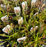 If fairies designed a carnivorous plant, it would be the Sundew. With their glistening droplets that look like morning dew (but are actually bug glue!), these dazzling plants lure in unsuspecting insects like a five-star sticky buffet. With over 190 species, Sundews come in all shapes — from cute little rounds to elegant tentacled stars — each leaf lined with sparkly red hairs that act like living flypaper. When an insect lands for a “taste,” the leaf curls over, hugs it tight, and digests it. (Bon appétit!) To bring out those gorgeous red or pink hues, give your Sundew plenty of sunshine — they love basking in the light almost as much as they love catching bugs. Keep things warm and cozy, between 18°C and 24°C, and don’t be alarmed if your Sundew takes a nap in winter. A little slowdown and some browning leaves? Totally normal — it’s just recharging for its next insect feast.