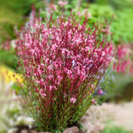 Gaura Baby Butterflies Rose has vibrant magenta-pink flowers that open from red buds, which gives a pretty two-tone effect over the long flowering season. The new leaves also emerge in rich red for extra colour. She looks dainty, but once established, she's tough and resilient. The flowers sway gracefully in the breeze hence the popular name Butterfly Bush which perfectly describes the plant resembles a fluttering cloud of hot pink butterflies. Plant this lovely perennial as a mass planting, or as a colourful border/hedge.