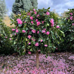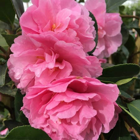 Camellia Marge Miller is a glorious, low-growing evergreen that forms a cascading ground cover of deep green, glossy foliage. From autumn, it produces a profusion of full, soft pink double blooms that bring exquisite colour and texture to shaded areas of the garden. This graceful variety looks superb spilling over retaining walls, draping from containers or hanging baskets, or mass-planted beneath trees to create a lush, flowering carpet. Perfect for adding romance and year-round interest to both formal and cottage-style landscapes