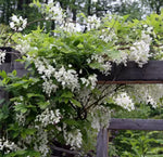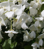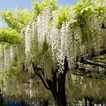 Highly scented, award-winning Wisteria brachybotrys Shiro-Kapitan is a gorgeous climber with flowers of great beauty. It produces masses of hanging sprays up to 15cm long of fragrant, pea-like snow-white flowers with a prominent yellow spot. Shiro-Kapitan bursts into flower in spring and early summer, with the summer blooms more pinkish in bud. New foliage arrives a very pale yellow-green providing a beautiful soft contrast to the pure white blooms. Wonderful grown over a dead tree trunk, the wisteria looks stunning on fences, verandahs, pergolas, or as a weeping standard on a very strong pole and frame. Prune lightly after flowering and again in Autumn if required to shape as a standard. Please note: it is toxic to cats, dogs, and horses.