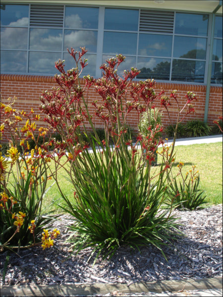 Regal Velvet is a very hardy, densely-foliaged Kangaroo Paw. The flowers are a stunning mix of pale green and ruby red and can reach a statuesque 1.4m high. As with all kangaroo paws, Regal Velvet will attract native birds and bees to the garden with its nectar-rich flowers. Ideal for mass planting, pots and low-maintenance gardens or landscapes.