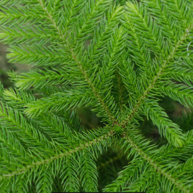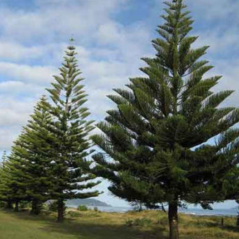 The Norfolk Island Pine is a large, stately evergreen tree with a distinctive pyramidal shape. Distinctive tiers of whorled, horizontal branches radiate outwards from the strong trunk with regularly spaced, scaled, densely-arranged leaves of dark green. This species is used as a feature in large gardens and paddocks but can be used in avenues, windbreaks, and indoor or outdoor pots - particularly as a Christmas tree.