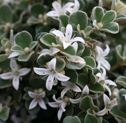 Correa alba Star Showers PBR is an excellent landscaping plant - hardy, low-growing with lovely silver foliage. Dainty white star-shaped flowers appear in abundance in autumn through to early spring. It is excellent to use for winter colour on embankment areas and as a foliage contrast in planter beds for gardens where height is a restriction or specimen tub plant.Ā