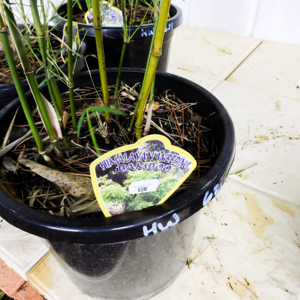Himalayan Weeping (Drepanostachyum falcatum) is a very graceful, fine-leafed variety of clumping bamboo. Its long slender culms are unable to hold the weight of the profuse amounts of lush foliage and droop to create a beautiful weeping habit. It can be pruned and grows well indoors. Great for containers, this fast-growing bamboo is perfect for screening in a tight space.