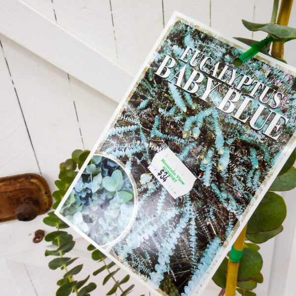 Eucalyptus pulverulenta, or Baby Blue eucalyptus/ Silver Leaved Mountain Gum or Silver Dollar Gum, is a small to medium-sized tree with a dense crown of stunning silver-blue rounded leaves. Cream flowers are produced between May and November, followed by large cup-shaped gumnuts. In cultivation, the plant is pruned to encourage more juvenile foliage. This foliage is in demand by florists for backing in flower arrangements.