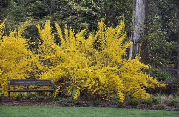 Forsythia x. Intermedia Lynwood Gold produces an amazing floral display in spring with an abundance of bright golden-yellow bell-shaped blossoms. Another spectacular show of colour is forthcoming in autumn when its leaves turn bright yellow with a hint of orange and red. A fast-growing forsythia, Lynwood Gold is perfect for growing as a shrub border or hedge and as a colourful ornamental plant. After flowering, prune flowering stems back to a lower side shoot. Apply a slow-release fertiliser after pruning.
