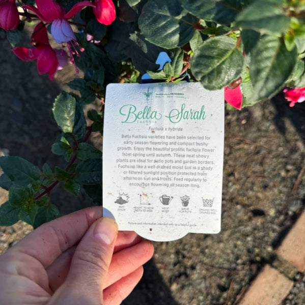 Bella Fuchsia Sarah blooms all summer long! An upright, bushy shrub with dark green foliage, Sarah displays abundant flowers with lavender-blue corollas and rosy-red sepals and stamens. It is an exceptional fuchsia variety that will add beauty and elegance to any garden. With its stunning flowers, unique foliage, and moderate size, Sarah is perfect for both container gardening and landscape design.