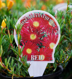 Mesembryanthemum Red is a fast-growing, evergreen groundcover. In spring through summer, large daisy-like, dramatic, deep red flowers appear - staying open for the day and closing at night. This small creeping succulent has juicy bauble-like foliage and is perfect for rockeries and full-sun garden areas where other plants may struggle. Mesembryanthemum Red flowers profusely and looks spectacular when planted on mass. Try it in a hanging basket!