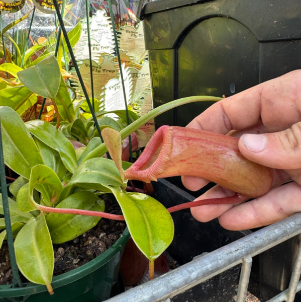 An extraordinary addition to any plant collection, the Pitcher Plant is a fascinating carnivorous species that naturally captures and digests insects for nourishment. Its unique trailing stems develop elegant pitcher-shaped traps — nature’s own insect catchers — that add an exotic touch to your indoor or outdoor space. Once established, Nepenthes will begin to vine and grow vigorously, looping around and clinging to nearby supports. Provide a trellis or hanging basket to showcase their graceful habit. In summer, they thrive outdoors under a shaded tree where bright light, warmth, and natural humidity help them flourish.