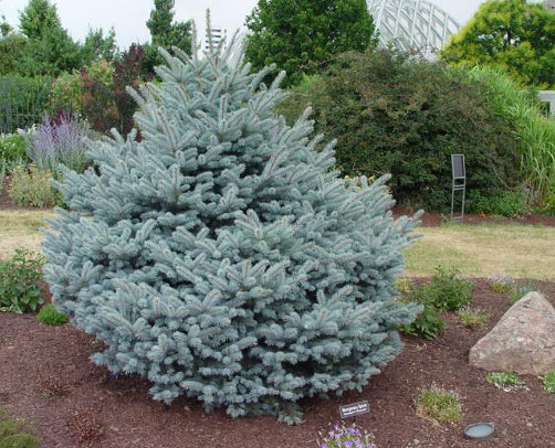 Picea pungens Montgomery, commonly known as Montgomery Blue Spruce, is a dwarf variety known for its compact, rounded shape and striking blue needles. It has a dense, compact, and broadly conical to rounded habit. Growing up to 1.5m, it is perfect for rockeries, borders, or as a specimen plant. This low-maintenance, slow-growing shrub is ideal for adding a splash of colour and structure to your garden.