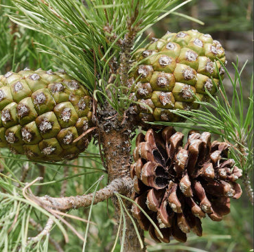 A distinguished evergreen native to the Mediterranean region, Pinus pinea, or Stone Pine, is instantly recognisable by its broad, umbrella-shaped crown and attractively fissured reddish-grey bark. The tree begins life with a rounded, compact habit and gradually matures into a graceful, flat-topped form. Growth is relatively fast in the early years, slowing with age as the tree develops its characteristic dome of dense foliage. The Stone Pine forms an impressive specimen or feature tree. When lower branches are pruned, it becomes an elegant shade or avenue tree of striking form and presence. Its resilience, distinctive silhouette and historical association with the Mediterranean landscape make Pinus pinea a refined and enduring choice for formal gardens, parks and streetscapes.