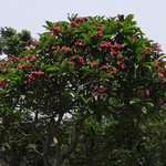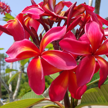 Bring instant tropical luxury to your garden with Plumeria rubra Red. This stunning small deciduous tree has an upright, elegant habit and produces glorious clusters of deep red-pink blooms. Their rich, velvety tones create a striking contrast against the lush green foliage, making it a true statement plant. The intoxicating fragrance of the flowers enhances any outdoor space, whether grown as a specimen tree in the garden or displayed in large decorative pots on balconies, patios, and courtyards.