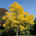 Robinia pseudoacacia Frisia, or Golden Robinia, is a vibrant, fast-growing, hardy deciduous tree and is one of the most graceful and decorative of all garden trees. Frisia has large pinnate leaves that are chartreuse-green in spring with the colour intensifying during the summer. The Golden Robinia produces drooping clusters of fragrant, white, pea-like flowers in summer followed by smooth brown seed pods. Striking foliage and dappled shade make this an elegant addition to residential gardens, for street planting, or in parks and gardens.